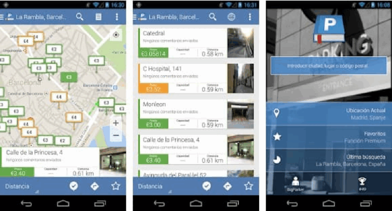 Al igual que las anteriores, Parkopedia permite encontrar aparcamiento cercano al destino. Su comparador de plazas de parking permite seleccionar la oferta que mejor se ajuste a tus intereses con información adicional: